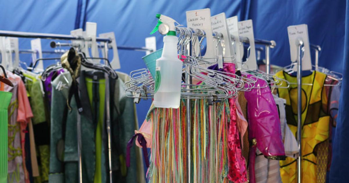 These bright costumes, inspired by street performers would wear, were made in Montreal.