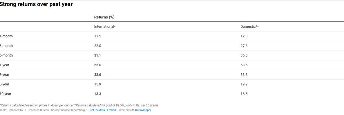 Gold touched a record high of Rs 1.24 lakh per 10 grams on October 7, according to media reports. It is up 62.4 per cent over the past year.