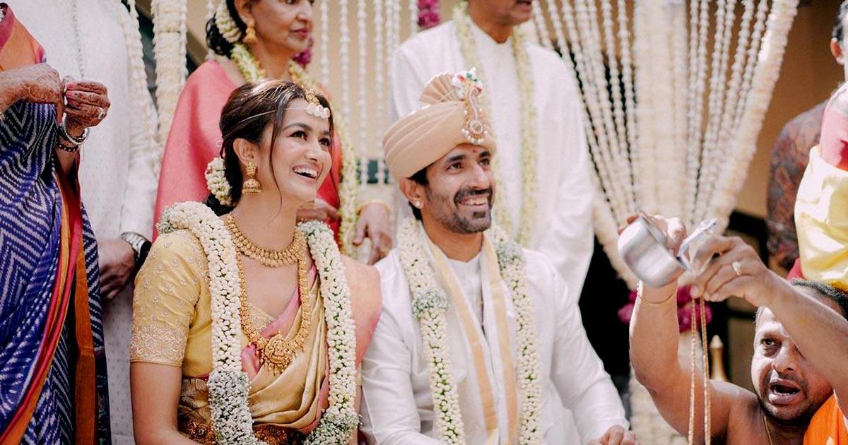 The intimate but colourful ceremony was held in the groom's ancestral home in Dodda Mane, Karnataka, high up in the misty Western Ghats, and was limited to family and a few close friends.