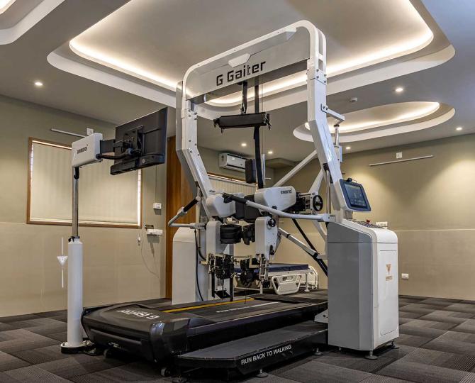 The result was G-Gaiter, an extension of our first product, Exo-Skeleton. It is a treadmill based robotic platform targeted at people who are unable to walk due to stroke or spinal cord injury due to accident.