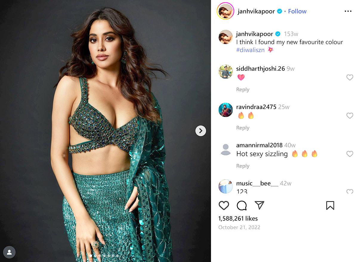 IMAGE: Janhvi Kapoor’s sequinned lehenga with a stone-encrusted blouse screams full-on festive sparkle. Photograph: Kind courtesy Janhvi Kapoor/Instagram