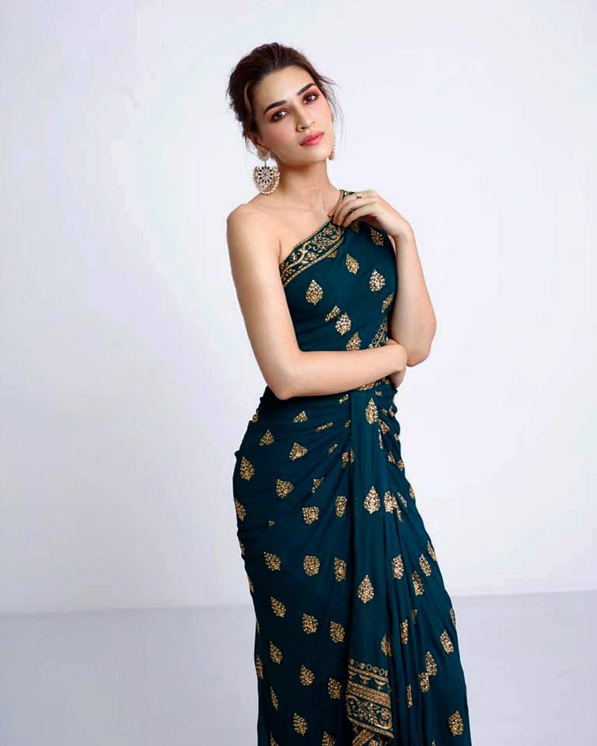 IMAGE: Kriti Sanon keeps it fuss-free yet fab in a pre-draped sari. Photograph: Kind courtesy Kriti Sanon/Instagram