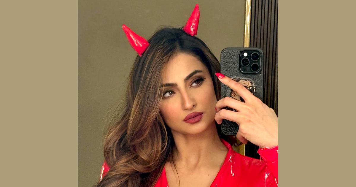 IMAGE: Angling her face and locking eyes with the camera, Palak Tiwari creates a 'I-challenge-you' selfie. Her latex outfit, cute red horns and matching red talons add to the drama.