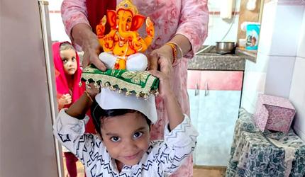 'Happy Ganesh Chaturthi,' says Suryaansh Singh Sengar of Mumbai, sharing this picture of his joyous Lord Ganesh.