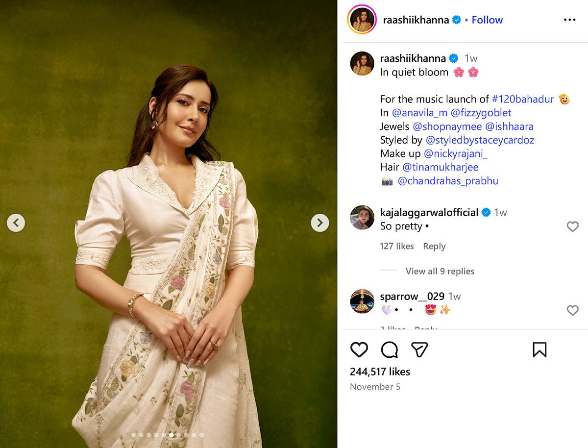 Raashii Khanna, who's gearing up for 120 Bahadur, has a style language that feels straight out of a love story; she genuinely romances with her clothes.