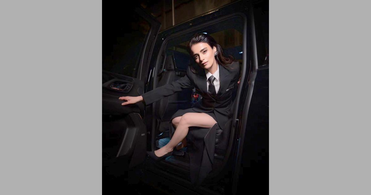 IMAGE: Boardroom hot and unapologetic -- Sharvari's tie adds a touch of formality to her outfit. Photograph: Kind courtesy Sharvari/Instagram