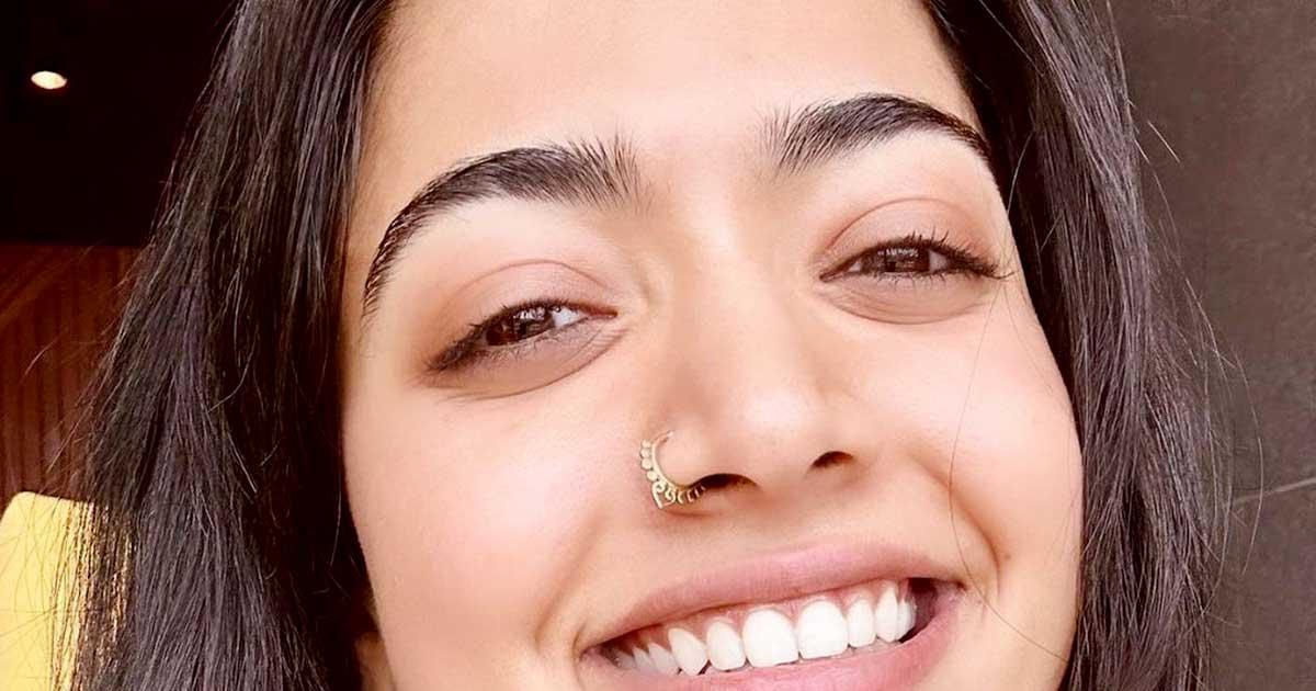 IMAGE: Rasmika dons a fresh face and a black bindi for a touch of glam.