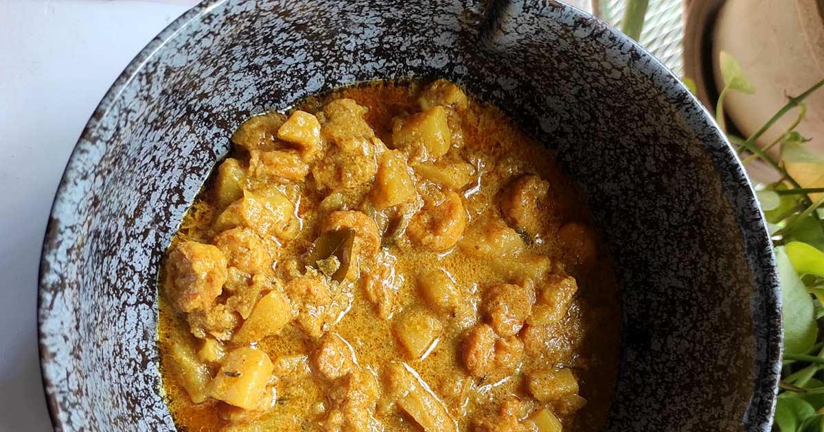 Prawns is a favourite at home and while Shrimp Pulau is reserved for weekends, this coconut-based curry keeps showing up at the dinner table every week.