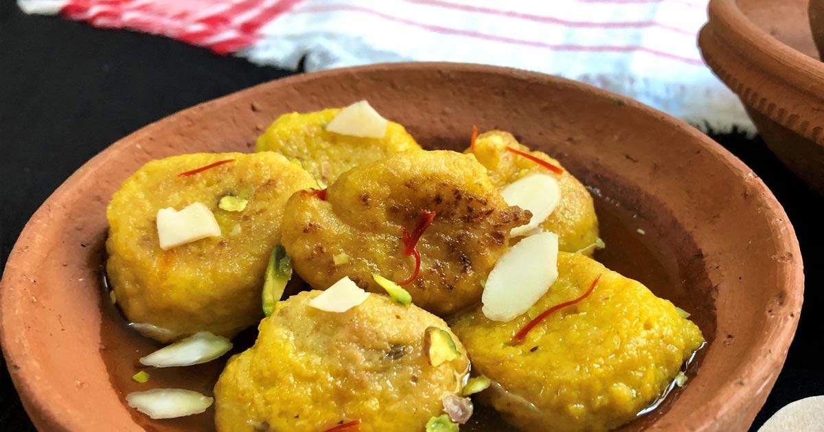 We're talking about the Rosh Bora, deep-fried pakoras made using split urad dal (black gram) and dunked in a saffron-infused sugar syrup.