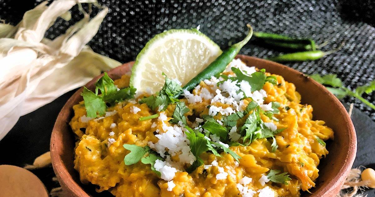 Her sweet, tangy but spicy version is seasoned with spices, herbs and milk. A winter snack, it can be had at any time during the year, and tastes gorgeous with a squeeze of lime juice, a garnish of chopped coriander leaves and grated coconut.