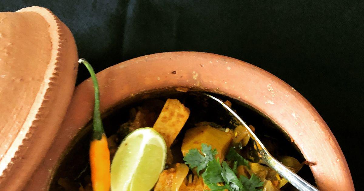 Bethica Das marinated the raw jackfruit with Indian spices, mustard oil and garlic, before transferring it into a handi in which it is cooked.
