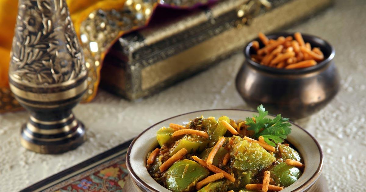 A traditional Rajasthani dish, Bikaneri Sev Tamatar is popular among Gujaratis too.