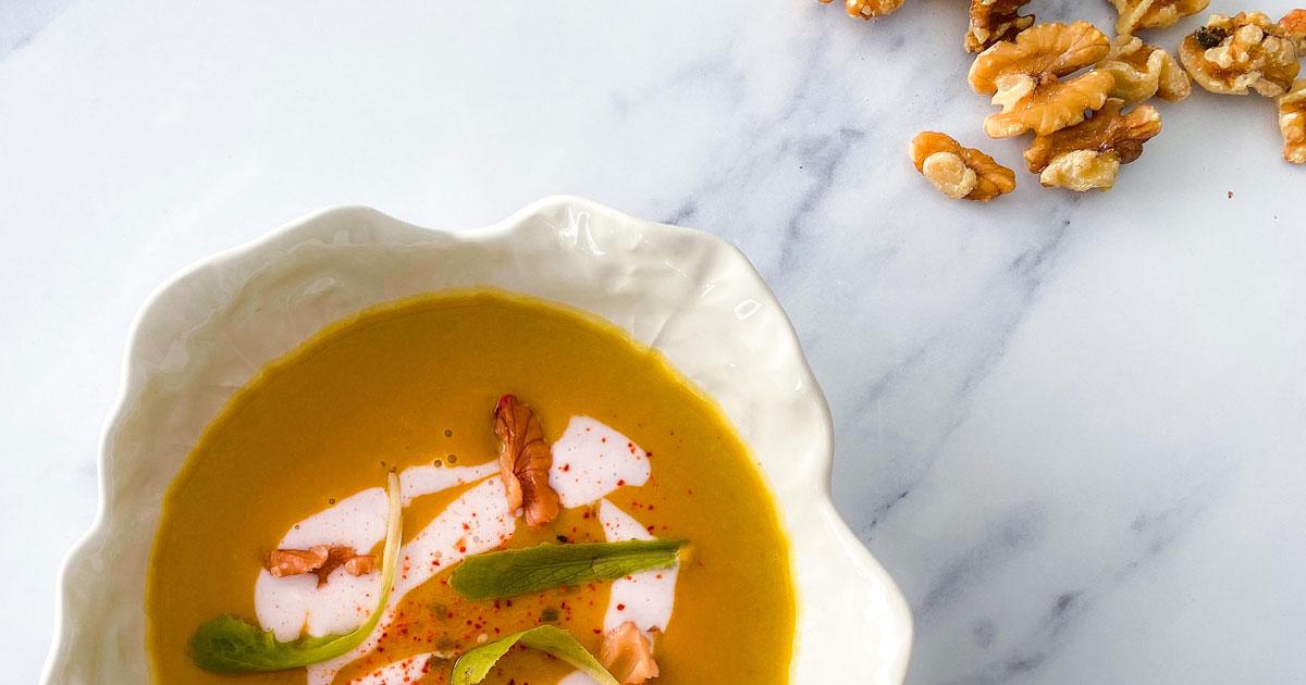 Enjoy Chef Sabyasachi Gorai's silky, smooth Walnut Pumpkin Soup with its right balance of flavours and the tantalising inclusion of vanilla.