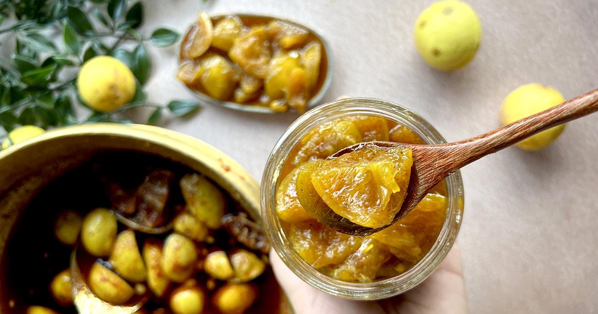 The combination of jaggery, lemon, salt and red chilly make a wonderful sweet, tangy relish spiked with a little spice.