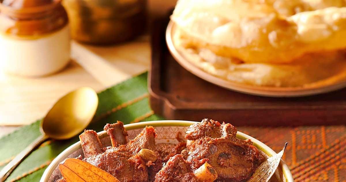A Bengali-style mutton curry, Kosha Mangsho gets its distinctive flavour from pungent garam masala spices, yoghurt and the mustard oil it is cooked in.