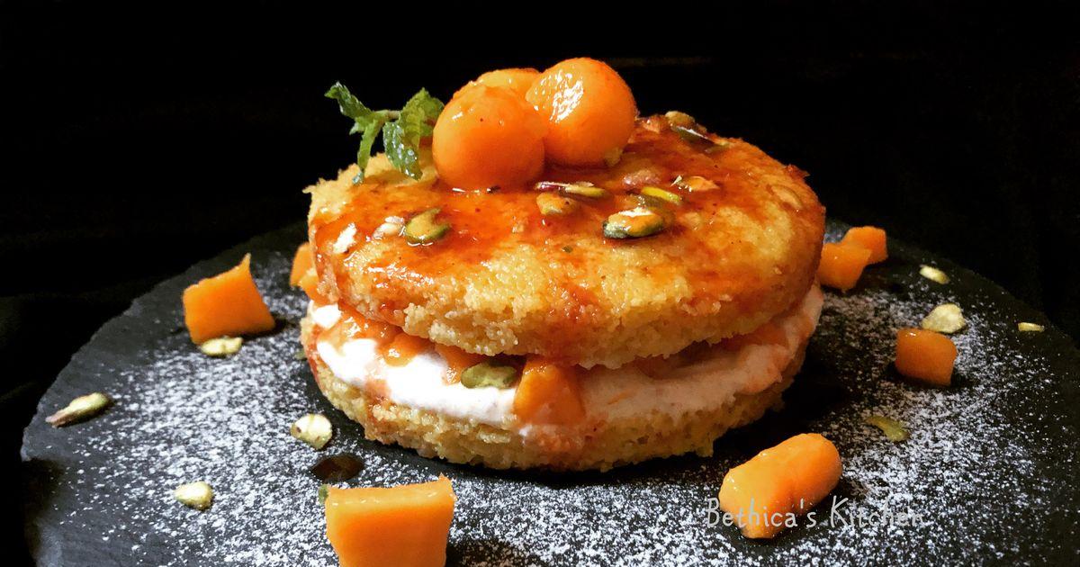 "I tried this innovative fusion dessert as a summer treat by preparing mango dhokla and then layered it with dates, shrikhand, chopped mangoes and pistachios. As a garnish, I added mango scoops, chopped pistachios and a drizzle of sweet tamarind chutney. You can enjoy it chilled or at room temperature."