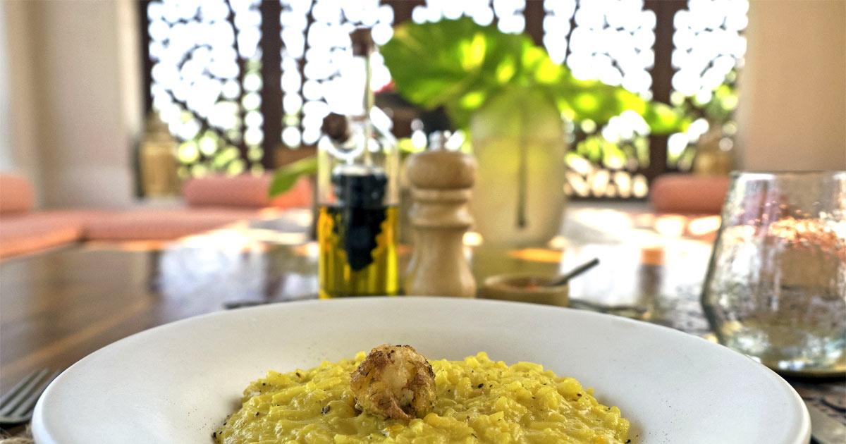 - Divide the risotto equally into two plates or ideally two coup plates (plates for pasta and risotto that are a cross between a bowl and a plate).