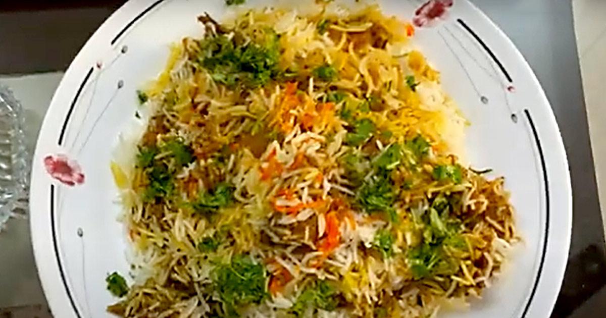 Garnish with caramelised onions, saffron-infused water over the biryani.