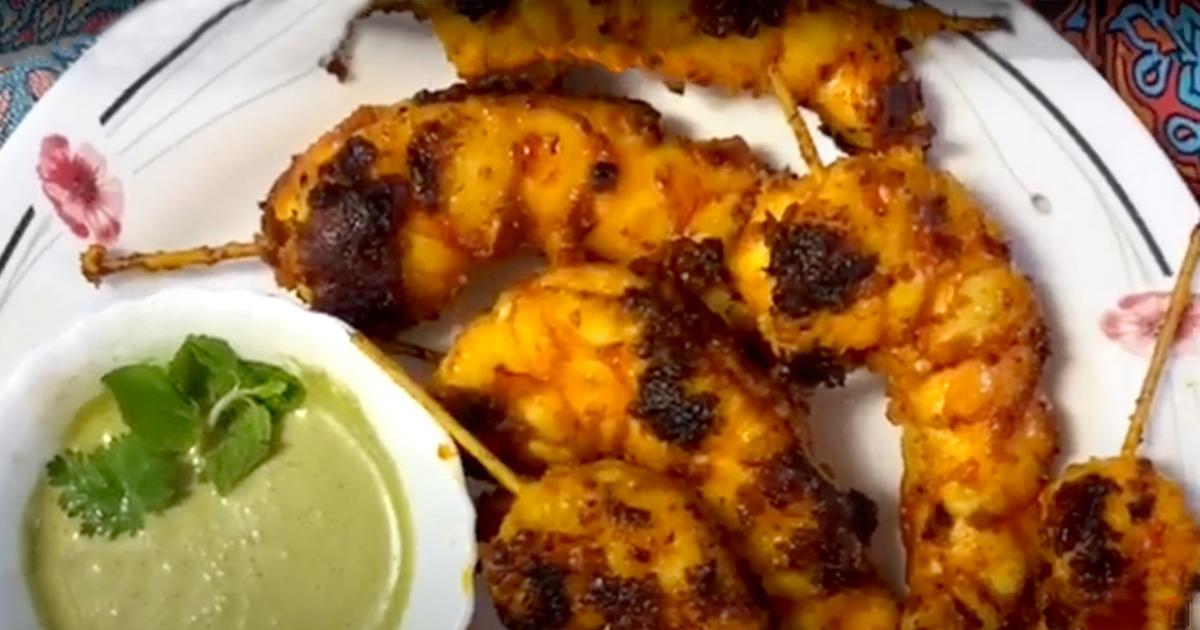 Tawa Fry Tandoori Prawns with steamed rice and dal is a a delightful dinner or lunch.