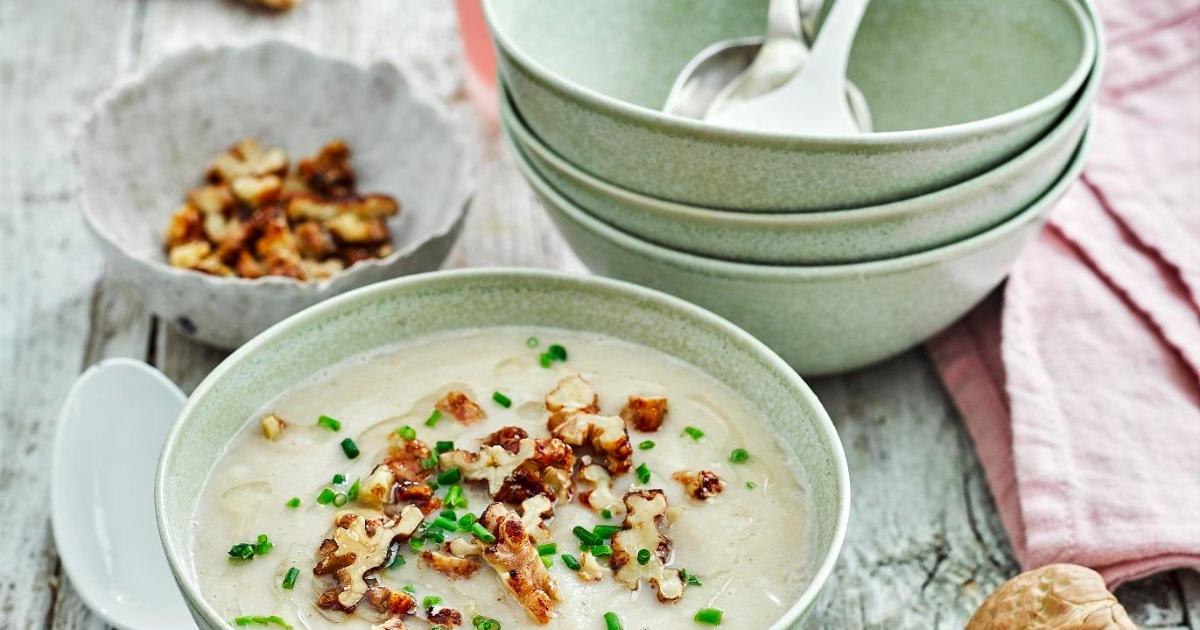 Finish the soup with crumbled seasoned walnuts and serve with a light salad or sandwiches.