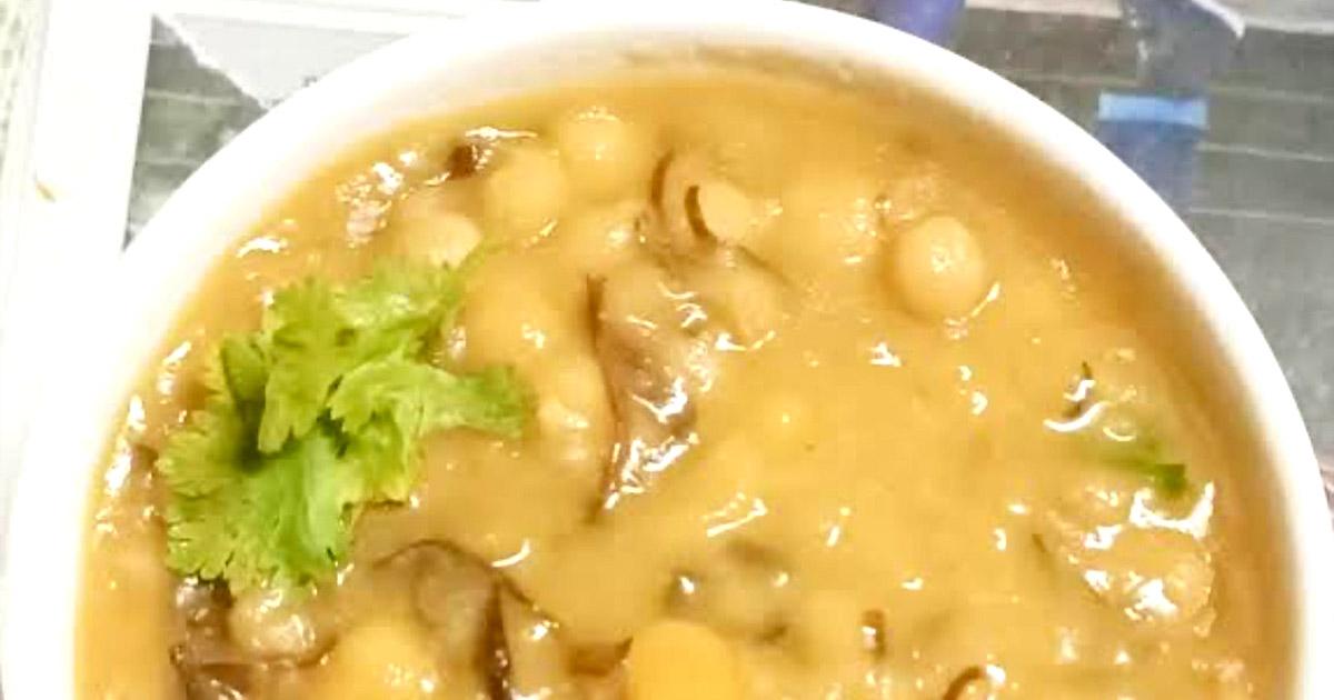 - Boil or pressure cook the matar dal with the bamboo shoots, turmeric powder, jeera powder in a cooker until its cooked and soft; about 3 whistles.