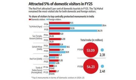 The Red Fort attracted 5 per cent of domestic tourists in FY25.