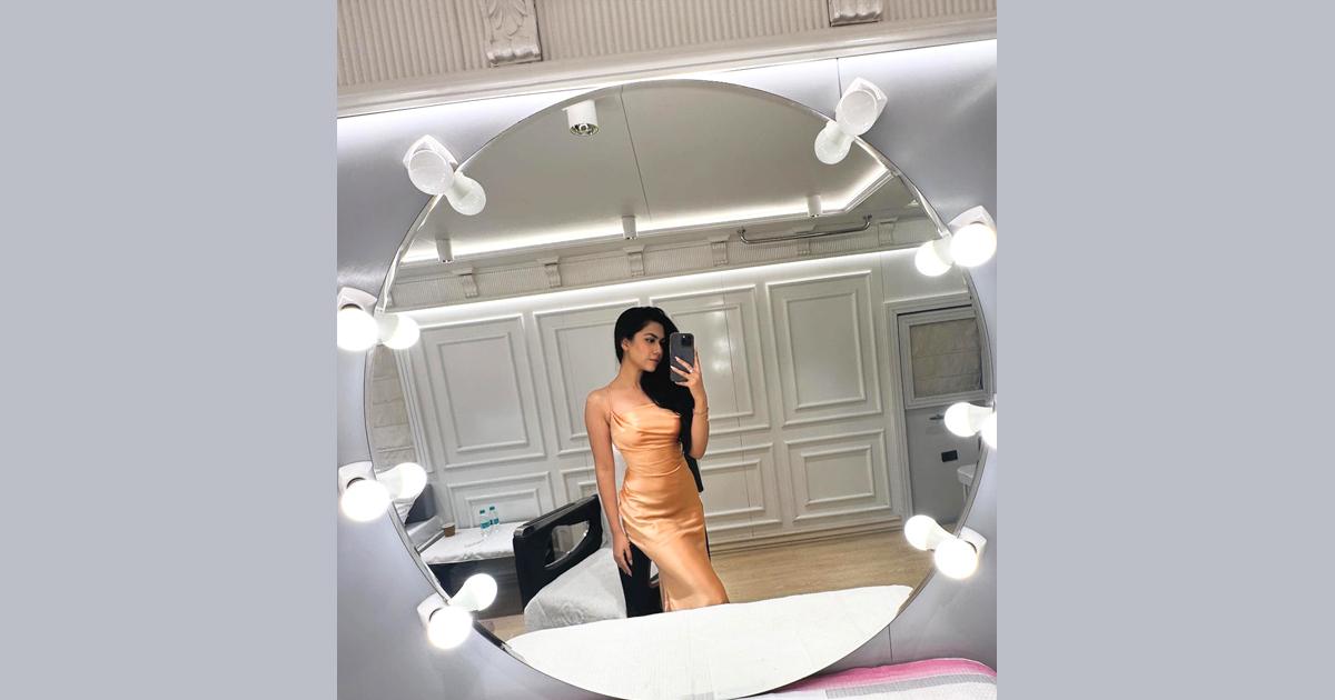 IMAGE: Reem Sameer Shaikh is turning heads in her peach satin dress -- just look at that lit mirror selfie. All photographs: Kind courtesy Reem Sameer Shaikh/Instagram