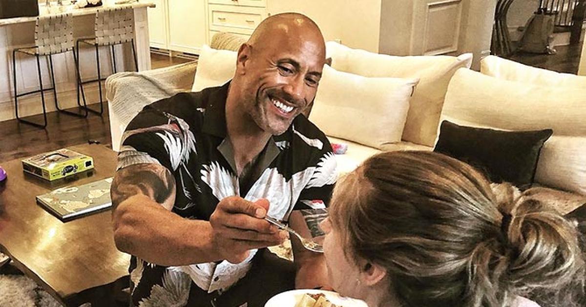 When he's not pumping muscles in the gym or attempting fatal stunts, The Rock is busy playing father to his three daughters.