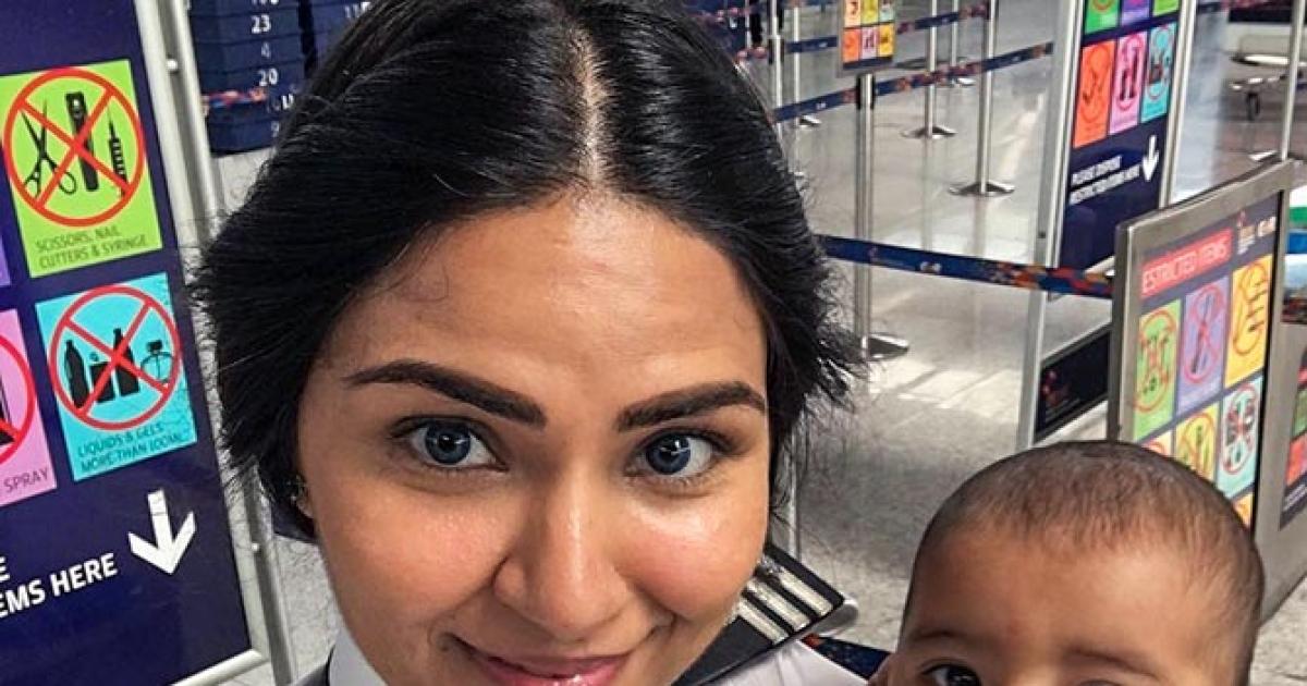 The pilot shared a pic of her in uniform at the airport along with her bundle of joy, her daughter Rasbhari, and the pic has gone viral.