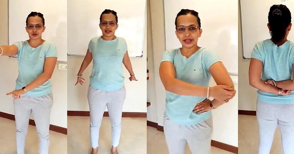 IMAGE: Rujuta Diwekar demonstrates simple stretches to get rid of stiffness due to excessive use of gadgets. Photograph: Kind courtesy Rujuta Diwekar/Instagram