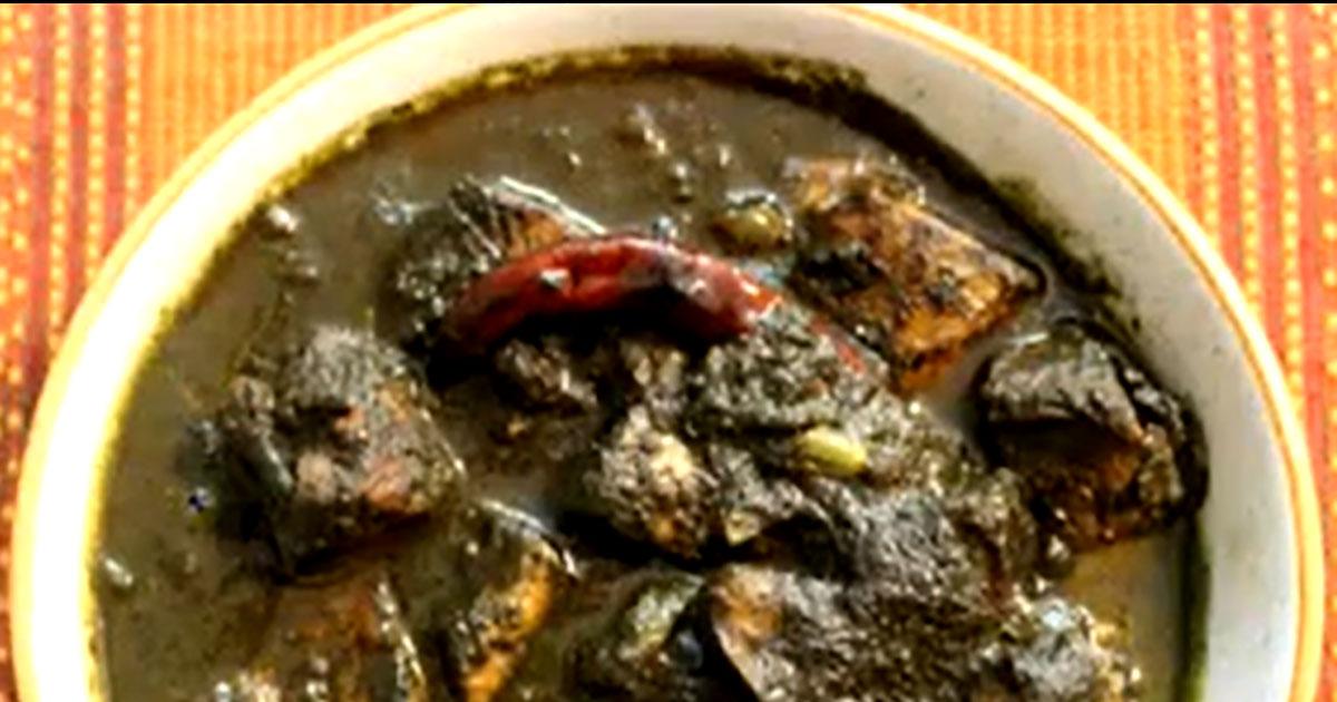 In a blender, add the roasted sesame, ginger, green chillies, garlic, 3 dried red chillies and a little water to make a paste. - In a pan, heat some mustard oil.