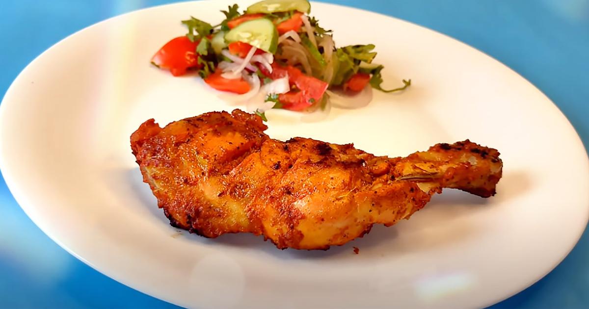 Brush some oil on the chicken to get the glazed look. - Serve hot with vegetable salad of your choice.