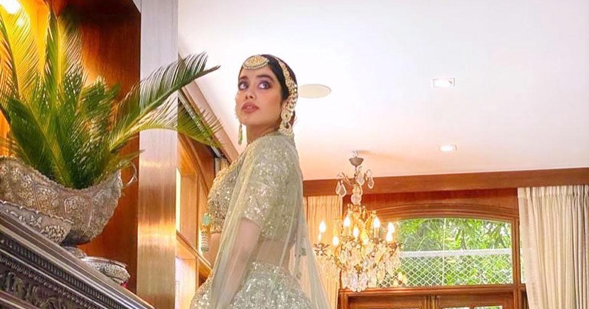 Jahnvi looked resplendent as a bride in a pastel green lehenga.