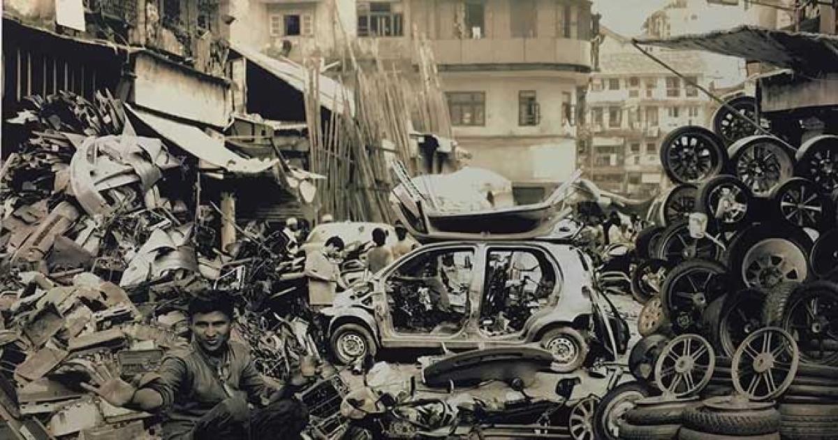 In a composition like Break, a pile of vehicle parts, tyres etc and buildings surrounding them leave no empty spaces.