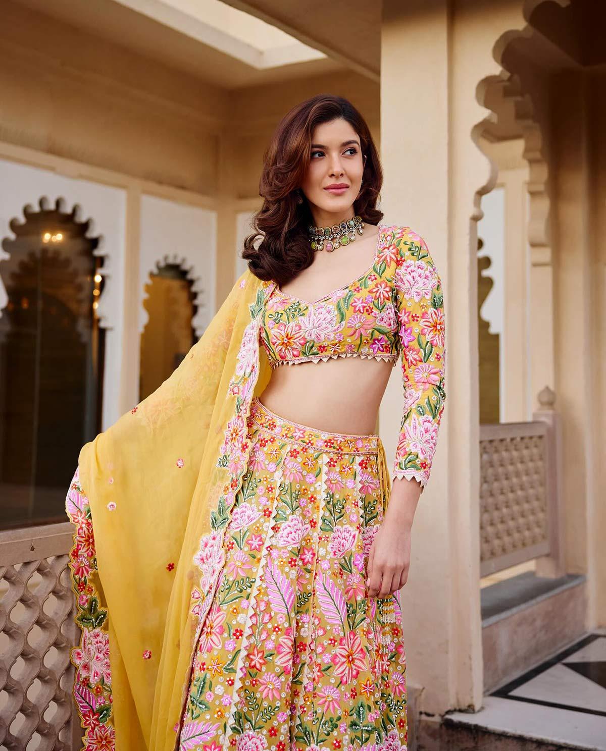 IMAGE: Sunshine, but make it couture! A floral yellow lehenga like Shanaya’s is your cheat code to slaying daytime functions. A look that will get you the best golden-hour selfies. Photograph: Kind courtesy Shanaya Kapoor/Instagram