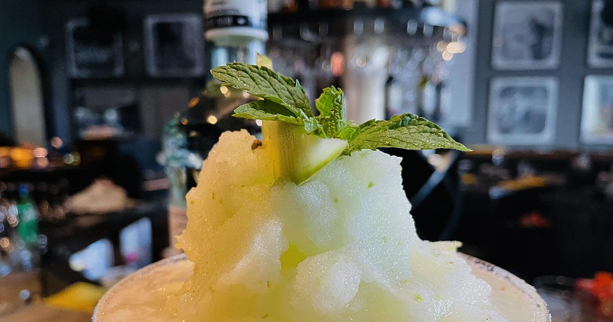 The Pickled Mangorita is a vibrant, fruity drink made with mango pulp and rum.