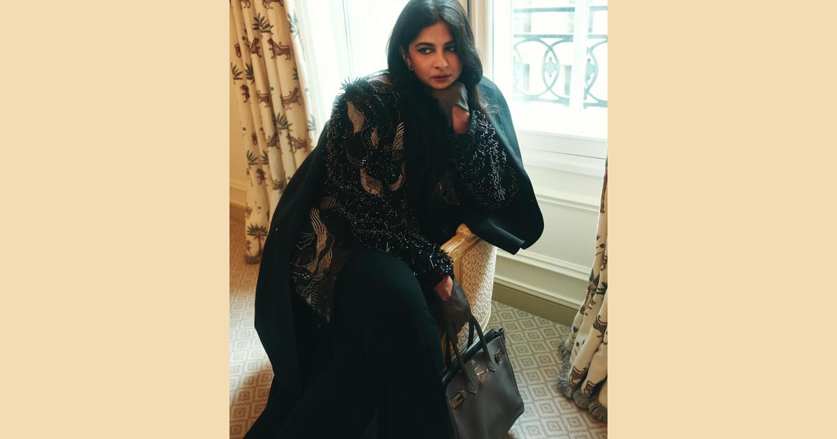 IMAGE: Sonam Kapoor brings on the heat by layering trends through crochet and rose applique, topped off with statement rings and a statement watch for the Elie Saab show. Photograph: Kind courtesy Rhea Kapoor/Instagram