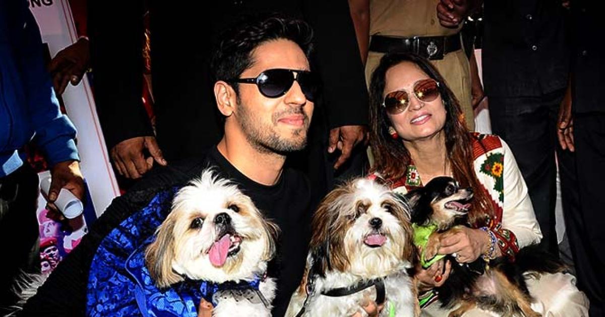 IMAGE: Sidharth Malhotra and Smita Thackeray pose with Lhasa Apsos and a Chihuahua.