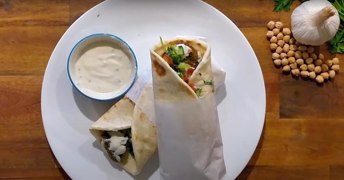 Nadiya Sarguroh's Falafel Wrap is stuffed with crispy patties made of chickpeas, hummus, a salad of chopped cucumber, tomatoes and greens, and served with a drizzle of ghar mein bana hua tahini-based sauce.