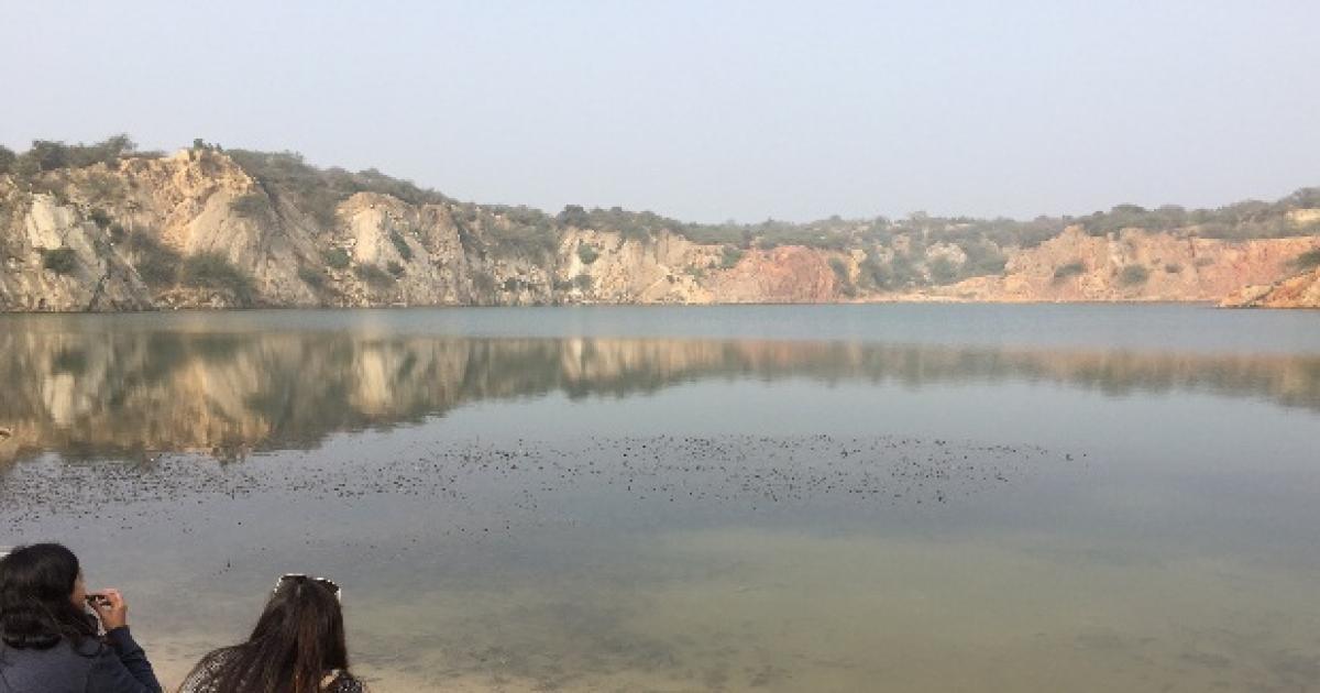 Bholi ji tells us this is one of many lakes formed in this area due to reckless and unmanaged mining of sandstone, lime and Badarpur sand. "Till a couple of decades ago, these lakes were huge open pit mines. Extensive dynamiting turned these hills into troughs," he says.