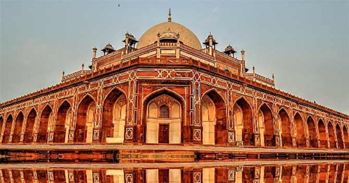 IMAGE: When the reflection is so perfect, imagine what a masterpiece the actual structure would be! This picture of Humayun's Tomb in New Delhi was sent by