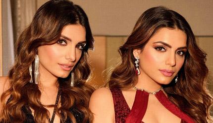 IMAGE: Prakriti goes fiery in red; Sukriti plays it cool in chic blue. All photographs: Kind courtesy Sukriti Kakar/Instagram and Prakriti Kakar/Instagram
