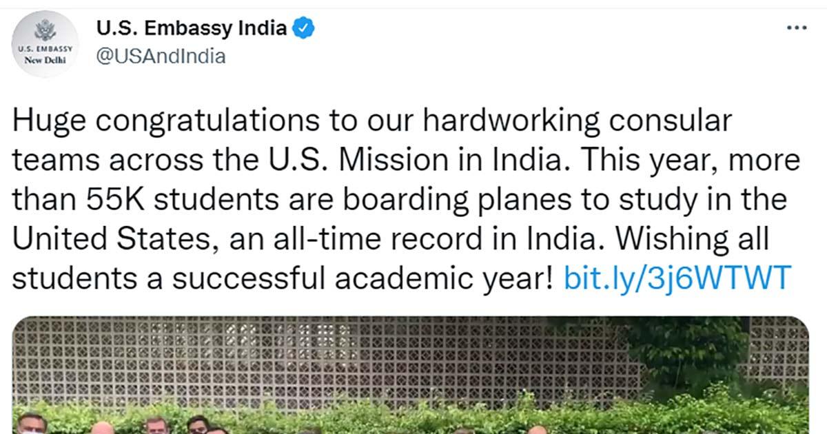The United States mission in India announced that its embassy and consulates approved more student visa applicants in 2021 than ever before, despite the global pandemic.