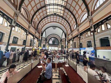 IMAGE: Inside the Saigon Central Post Office, a beautiful building designed by Gustav Eiffel, the man behind the Eiffel Tower.