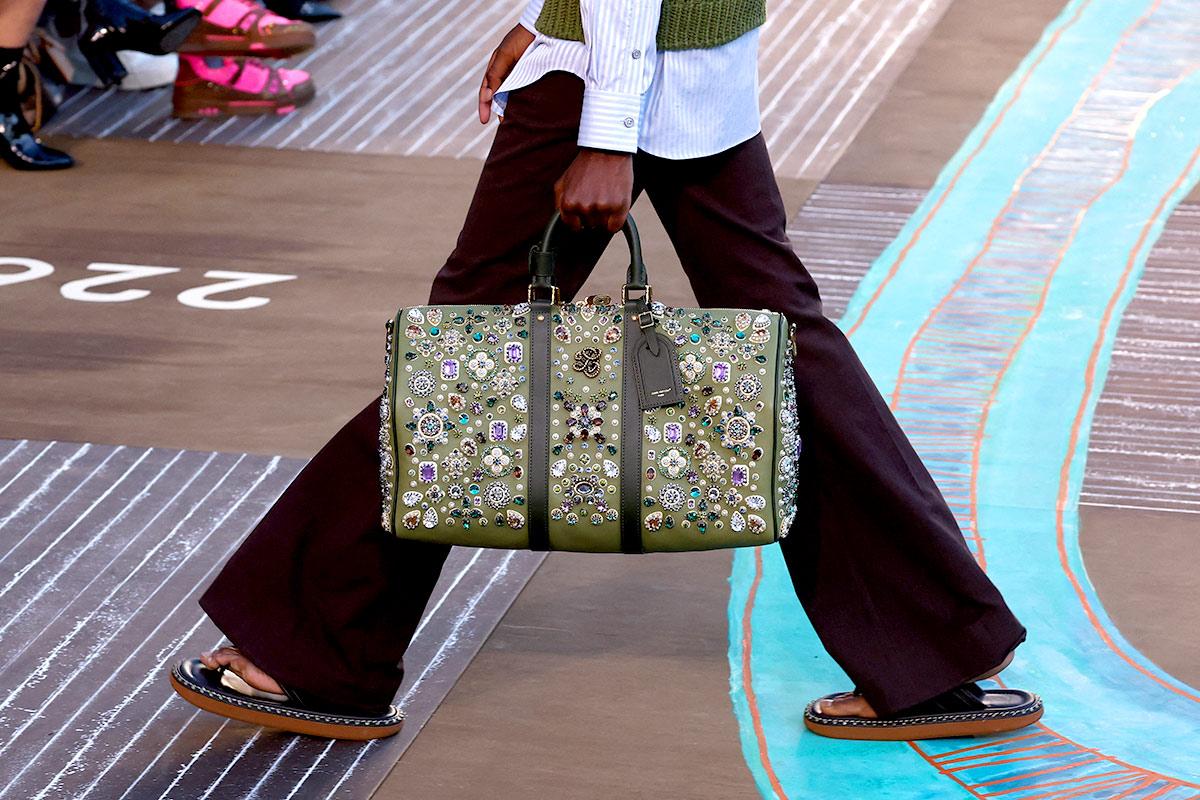 IMAGE: Louis Vuitton's Paris Spring Summer 2026 collection had bags covered with India-inspired rhinestone designs. Photograph: Kind courtesy Gonzalo Fuentes/Reuters