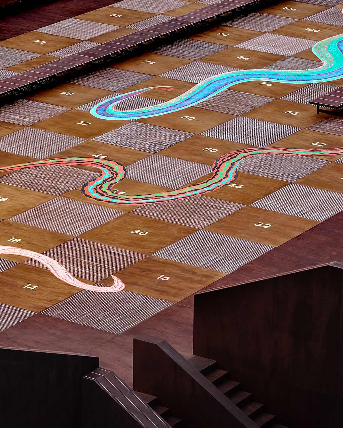 IMAGE: The Louis Vuitton Men’s Spring-Summer 2026 runway was designed by architect Bijoy Jain of Studio Mumbai. He turned the Place Georges Pompidou into an immersive playground featuring a life-sized game of Snakes and Ladders. Photograph: Kind courtesy Louis Vuitton/Instagram