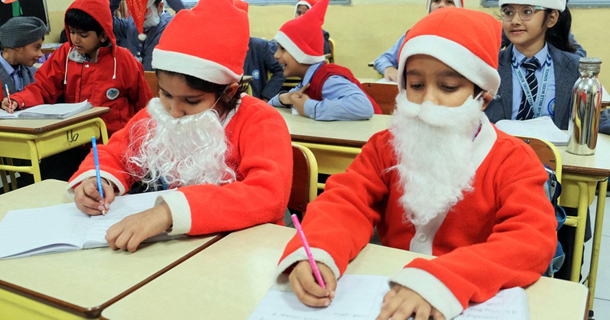 IMAGE: Children dressed as Santa Claus go to school on Christmas Eve in Patiala.