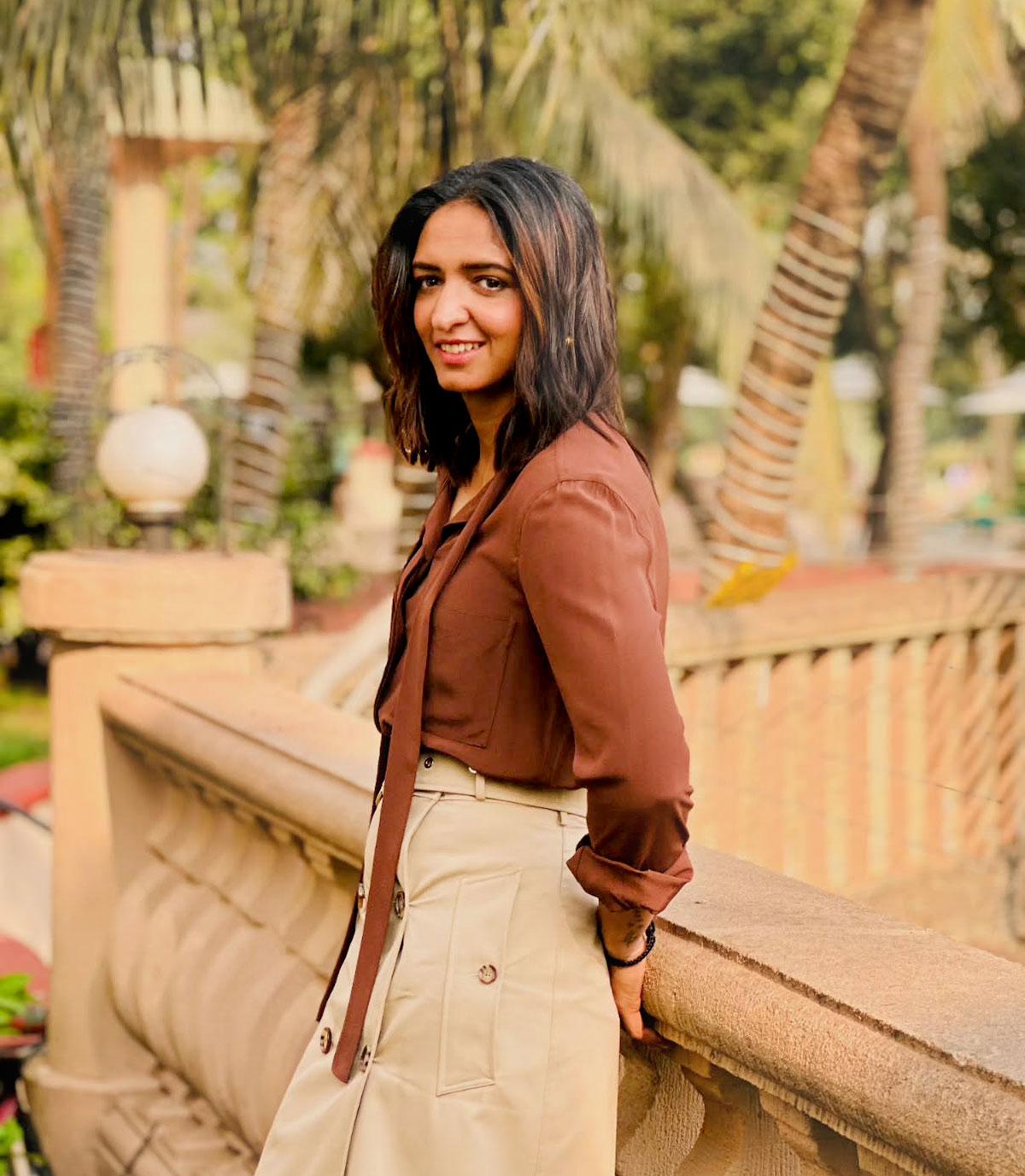 IMAGE: Neutral tones are definitely the new cool! She styles a brown shirt with beige trousers, giving major boardroom to dinner date inspo.