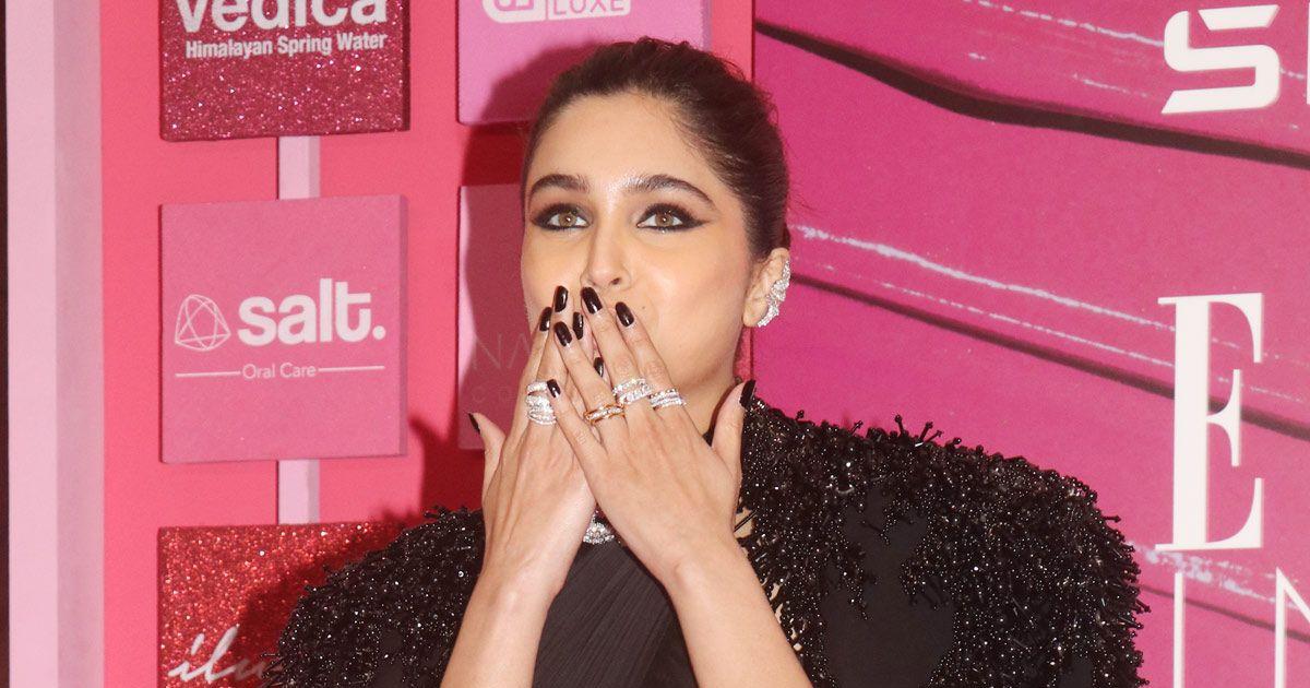 Sharvari -- who blew kisses to the photographers -- was a fashion force to reckon with in her all-black attire that included a statement cape jacket, bold kohl-lined eyes and black nails.