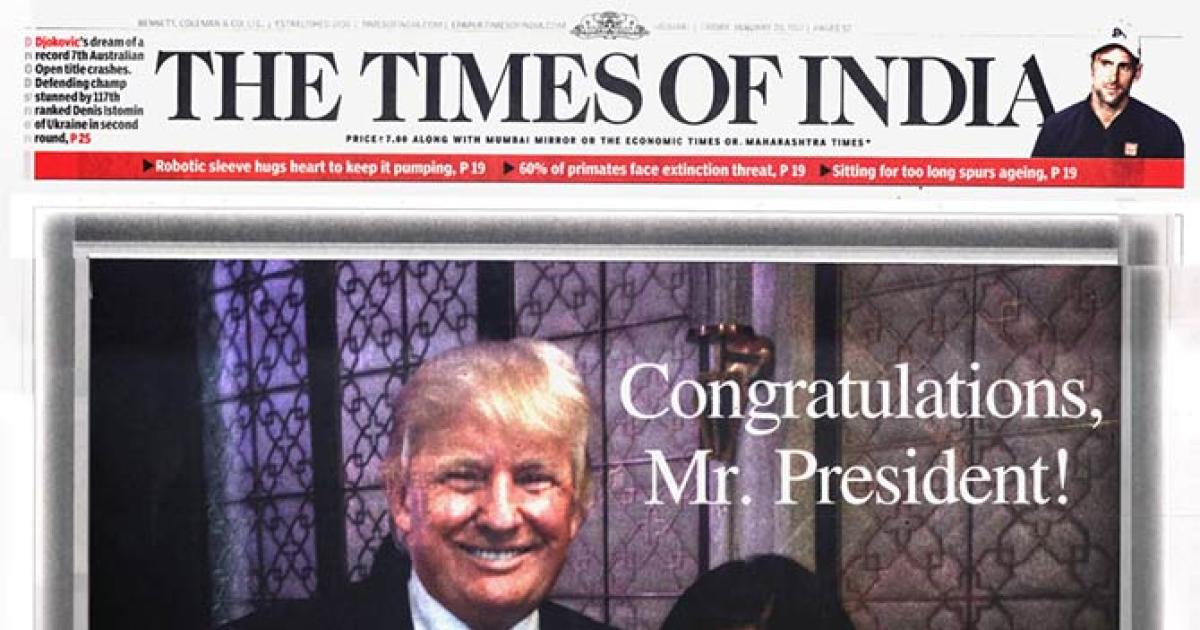 IMAGE: Devita Saraf's front page advertisement on the day of Donald Trump's inauguration.